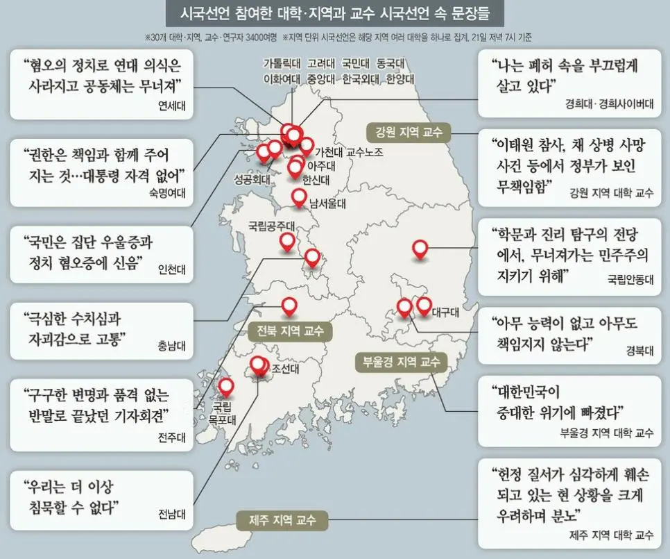 시국선언에 동참한 대학과 교수들, 그 목소리에 담긴 의미 "나는 폐허 속에서 부끄럽게 살고 있다."