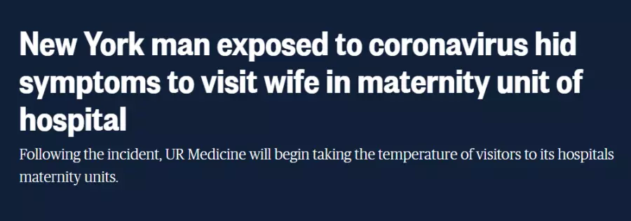 코로나 확진자와 접촉 경력이 있고, 의심 증상마저 발현된 어느 뉴욕의 남자가 임신한 아내가 너무나 보고 싶은 나머지 코로나 감염증 증상을 숨기고 병원 산부인과에 몰래 방문한게 들통남.