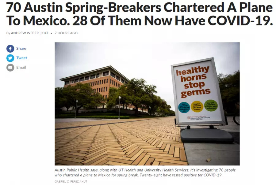 미국 전체가 코로나로 난리난 이 시국에 텍사스 거주 청년 70명이 전세기 하나를 구해서 멕시코로 놀러 감.